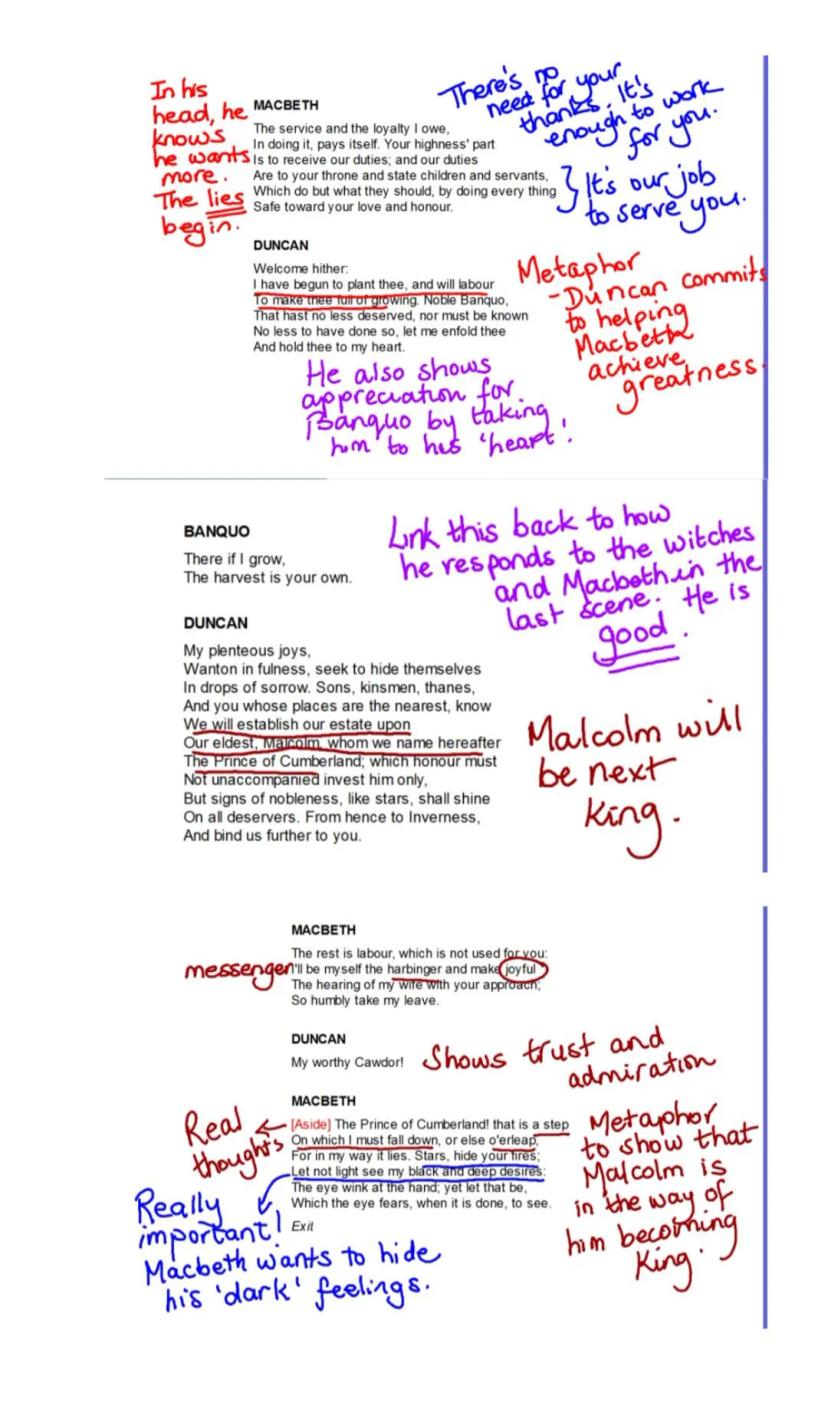 - Dramatic irony as the audience knows Macbeth's true intentions while other characters remain unaware