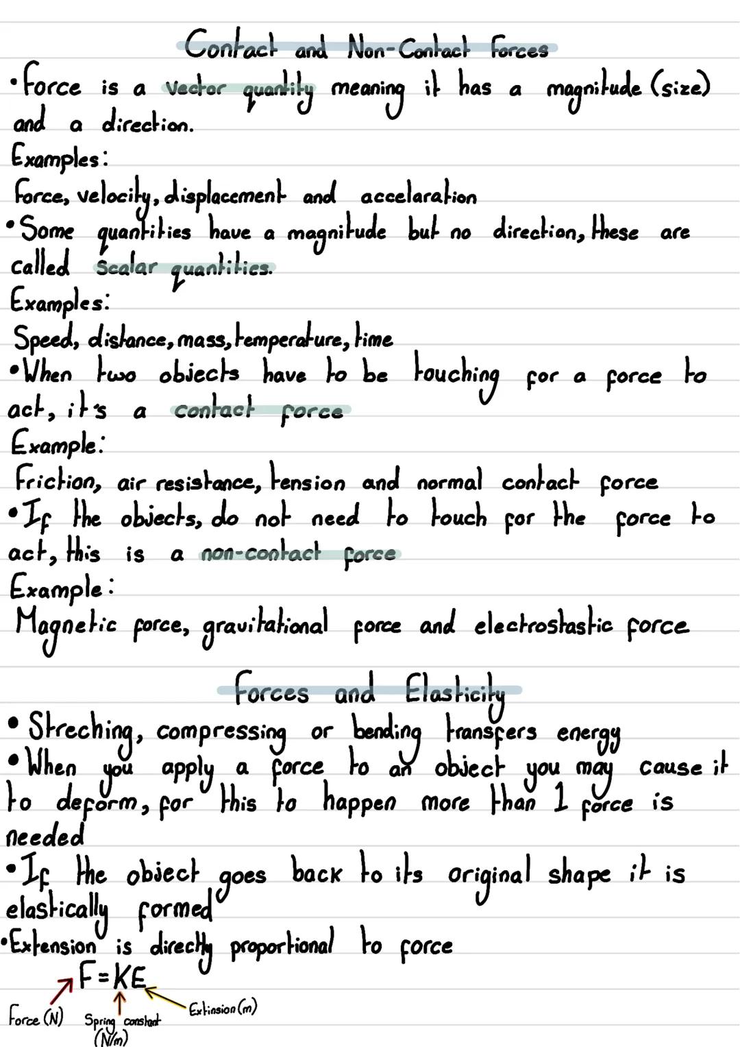 The notes also mention the limit of proportionality, beyond which the F = kE relationship no longer holds true. This is an important concept in forces and elasticity GCSE Physics.