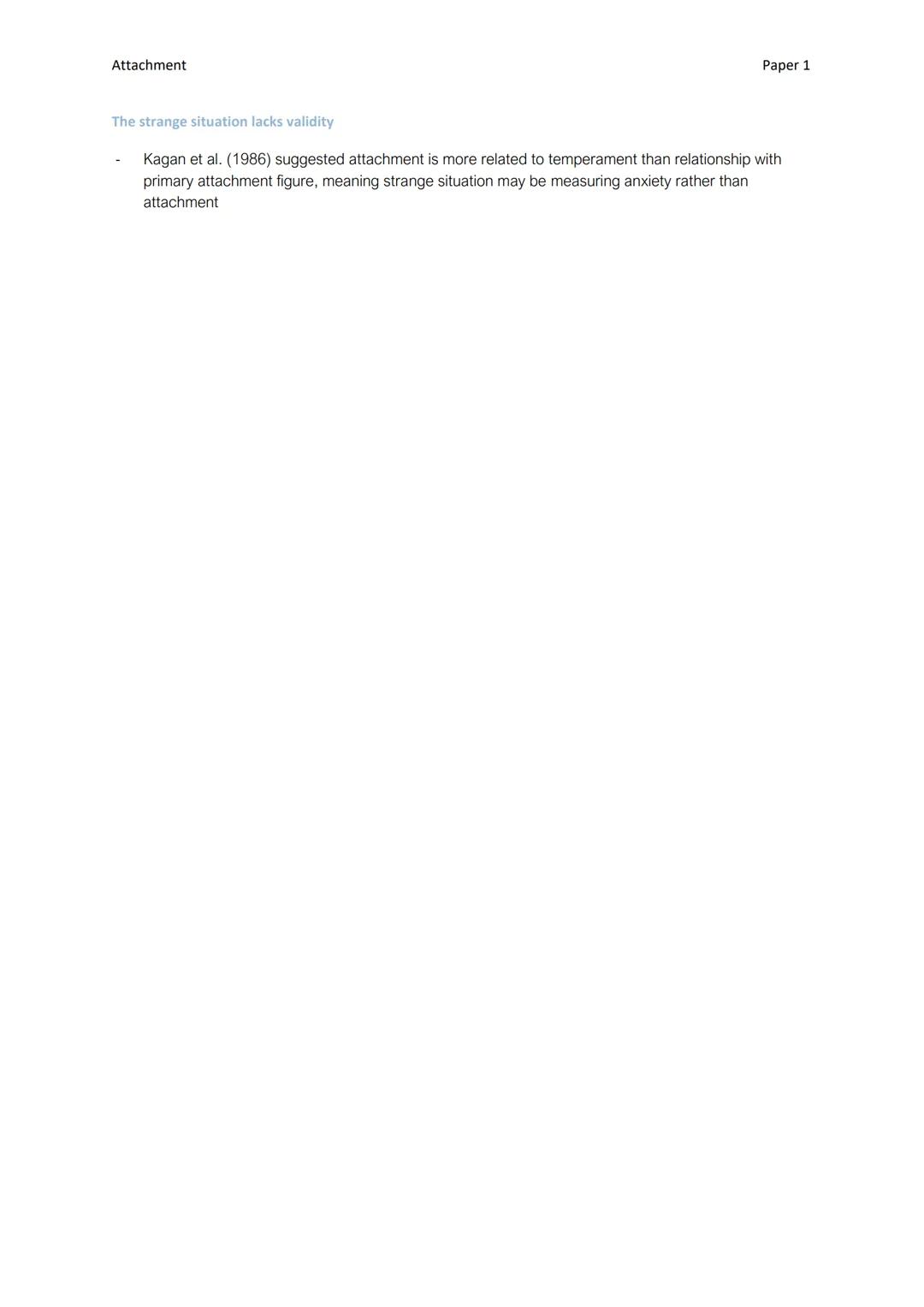 Validity of the Strange Situation: Kagan et al. (1986) suggested that the Strange Situation might be measuring anxiety or temperament rather than attachment.
