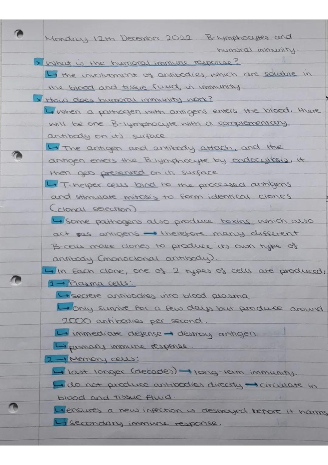 This page focuses on B-lymphocytes and humoral immunity, explaining how antibodies function in the immune response.