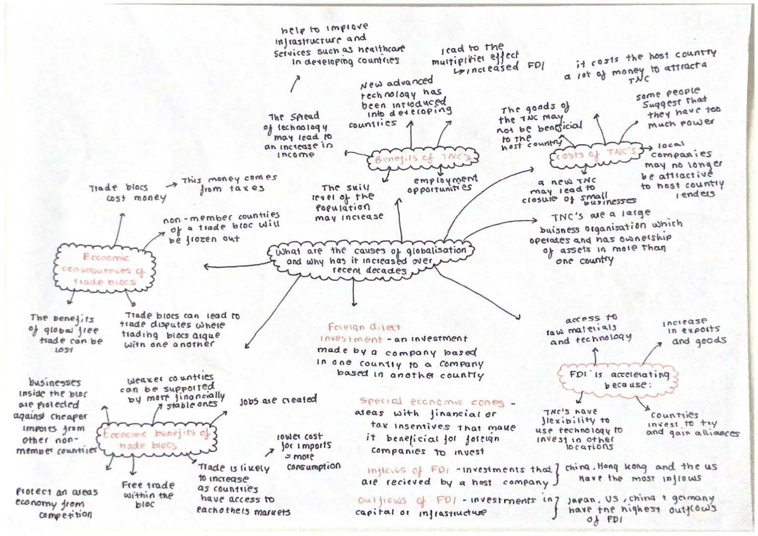Explore the key drivers behind globalisation and its recent acceleration. This summary covers the impact of technology, economic liberalisation, and the role of transnational corporations (TNCs) in shaping the global economy. Understand the benefits and challenges of globalisation, including trade blocs, foreign direct investment (FDI), and the implications for both developed and developing nations. Ideal for students studying human geography and global economic systems.