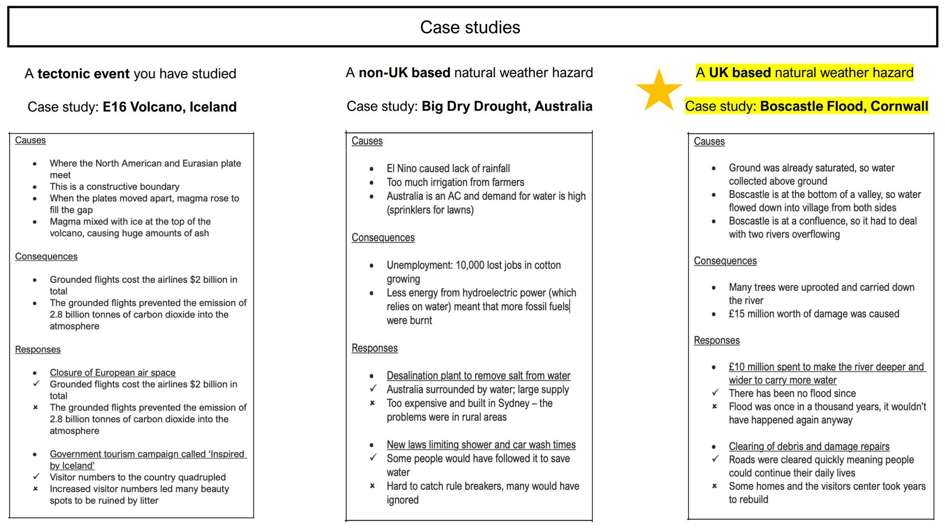 Exam Tip: For each case study, learn the causes, consequences, and responses - both positive and negative effects of the responses.