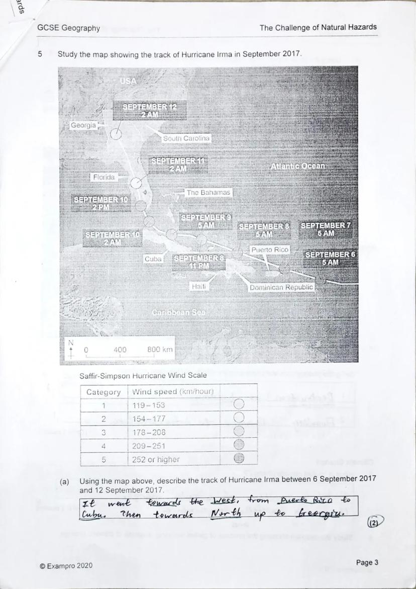 This page covers the effects of hurricanes and introduces the concept of climate change in the context of GCSE Geography Natural Hazards.