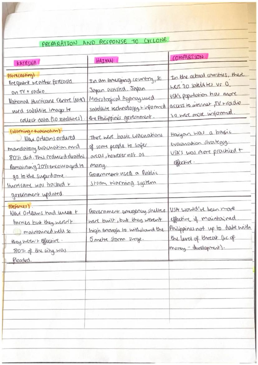 This page contrasts the preparation and response capabilities between a developed nation (USA) and an emerging economy (Philippines), highlighting the role of technology and resources in disaster management.
