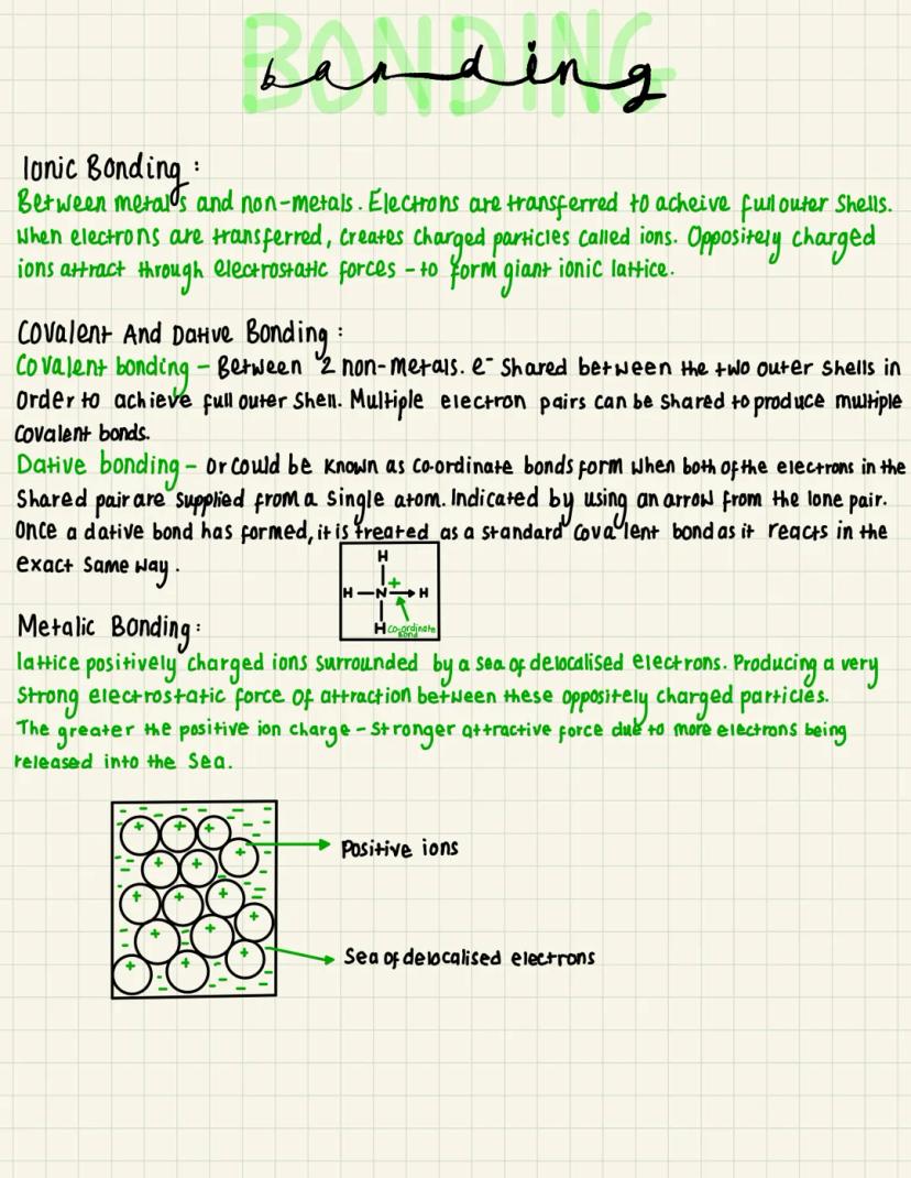 This page introduces the three main types of chemical bonding: ionic, covalent, and dative (coordinate) bonding. It also touches on metallic bonding.